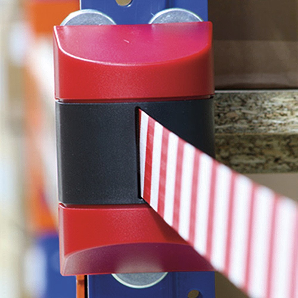 Dočasná pomôcka pre oddelenie priestorov. Magnetický držiak s vysúvateľným popruhom je zakončený magnetickým prvkom na uchytenie.
