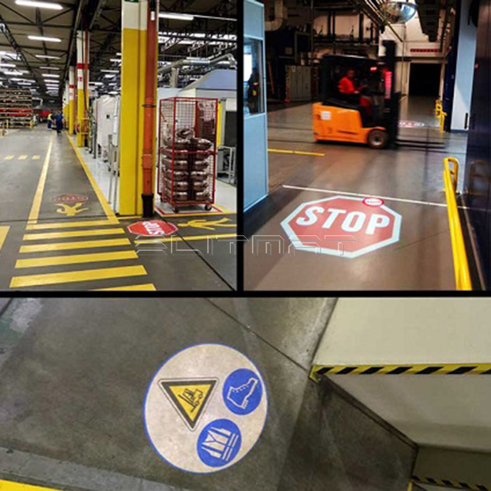V priemyselných pracovných prostrediach je nevyhnutné vybaviť výrobné systémy správnym bezpečnostným značením a značkami týkajúcich sa výrobnej linky. Projekčný typ značenia sa vyznačuje mnohými výhodami z hľadiska jeho viditeľnosti, keďže nepodlieha zhoršeniu kvality a je viditeľné v osvetlenom a veľmi tmavom prostredí a tiež pre úsporu času, pretože je to jednoduché na inštaláciu a dlhú životnosť.
