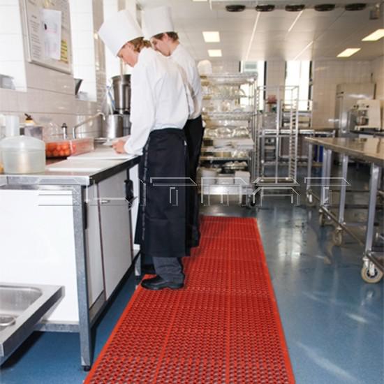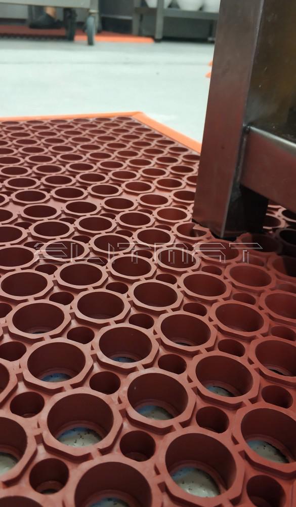 Rohože vhodné do suchého aj mokrého, mastného prostredia. Výroba a spracovanie potravín, bary, bitúnky. Dostupná gumová rohož alebo nitrilová.